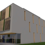 Nowy budynek biurowy w gminie w Łomnej Las zaprojektowano, w celu zaspokojenia zapotrzebowania na powierzchnię biurową, co wiąże się dynamicznym rozwojem firmy AERECO w Polsce. Prosta bryła biurowca powstanie na tej samej działce, co istniejący zespół obok wjazdu na teren inwestycji. Wejście do trzy kondygnacyjnego nowoczesnego biurowca zaprojektowano blisko istniejącego wjazdu. Strefa wejściowa z recepcją, dostępem do komunikacji pionowej będzie miała bezpośredni dostęp do jadalni oraz zewnętrznej strefy rekreacyjnej z tarasem i kładką nad istniejącym zbiornikiem wodnym. Na pierwszym i drugim piętrze przewidziano funkcję biurową. Główną konstrukcję zaprojektowano jako lekką stalową, z dodatkowym usztywnieniem w postaci żelbetowej klatki schodowej, szybu windowego, oraz szachtów instalacyjnych. Stropy wykonane zostaną jako lekkie zespolone (płyta żelbetowa z blachą trapezową). Projektowany biurowiec przewidziano jako ekologiczny, wyposażony w najnowsze technologie, co ściśle wiąże się z polityką firmy produkującej nowoczesne systemy wentylacyjne. Elewacje budynku od strony nasłonecznionej będą całkowicie przeszklone i „chronione” przed nadmierną ilością światła słonecznego, za pomocą systemu pionowych ruchomych paneli. Drewniane „żyletki” na fasadzie będą sąsiadować ze specjalnymi wertykalnymi pojemnikami (stal nierdzewna) na zieleń ekstensywną, które „połączą” roślinność na działce, z tą przewidzianą na dachu. Dla odmiany dwie elewacja nienasłonecznione będą miały jedynie wąskie i wysoki okna, ponieważ zyski z energii słonecznej z tej strony budynku są minimalne. Gabaryty oraz rozstaw okiem jest podobny, jak dla zielonych wertykalnych pojemników, usytuowanych na przeszklonych elewacjach. Wykończenie zewnętrznych ścian całego budynku, będą stanowić szare płyty cementowo-wapienne. Na zielonym dachu (piątej elewacji) dostępnym dla pracowników, oprócz roślinności ekstensywnej przewidziano miejsce na system kolektorów słonecznych oraz przestrzeń na urządzenia wentylacyjne.