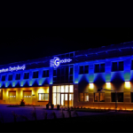 Budynek biurowy z halą magazynowa w gminie Dąbrówka stanowią architektoniczną całość. Dwukondygnacyjna bryła biurowca, usytuowana od frontu, została dostosowana gabarytami do hali magazynowej, która przylega bezpośrednio do budynku i łączy się funkcjonalnie z pomieszczeniami na parterze. Obiekt dwukondygnacyjny zaprojektowano w konstrukcji żelbetowej monolitycznej ze stropami bezbelkowymi opartymi na słupach i ścianach. Klatka schodowa stanowi usztywnienie poziome konstrukcji. Ściany budynku biurowego zaprojektowano z gazobetonu. Część jaką stanowi hala magazynowa zaprojektowano w lekkiej konstrukcji stalowej i obudowie z blach trapezowych, ocieplonych wkładem z wełny mineralnej.Obiekt charakteryzuje się dużą uniwersalnością ze względu na możliwości jego wykorzystania.