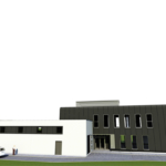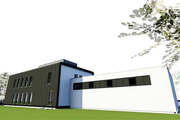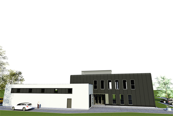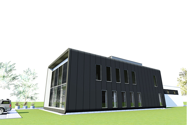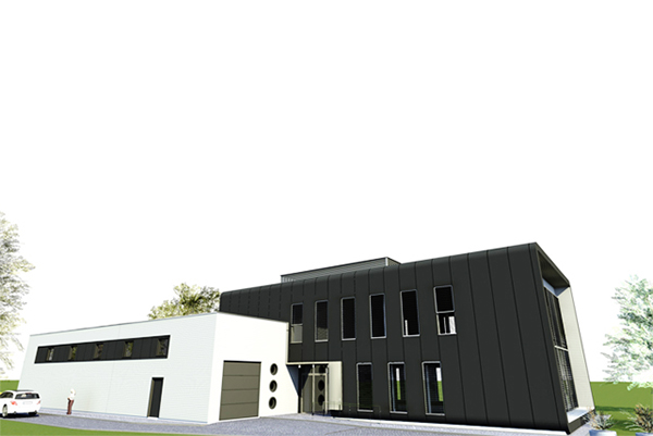 Inwestor przewiduje w budynku sprzedaż urządzeń drukujących, materiałów eksploatacyjnych wraz z serwisem. Obiekt kolorystyką i kształtem ma nawiązywać do wzornictwa urządzeń drukujących. W związku z przewidywaną funkcją budynek został podzielony na dwie części biurową i magazynową. Część biurowa przeznaczona głównie dla pracowników biurowych (piętro) oraz parter związany bezpośrednio z obsługą klientów. Część magazynowa obsługiwana przez pracowników fizycznych i niedostępna dla klientów. Ciemno-grafitowa trzykondygnacyjna (dwie kondygnacje nadziemne i jedna podziemna) bryła części biurowej będzie połączona z jednokondygnacyjną częścią magazynową (wykończenie białą płytą wielowarstwową z mikroprofilowaniem). Główne wejście do budynku znajdzie się w podcieniu od strony zachodniej w miejscu styku części biurowej z magazynową. Z ogólnodostępnego hallu wejściowego znajduje się bezpośredni dostęp części biurowej zajmującej się obsługą klientów oraz do klatki schodowej prowadzącej na inne kondygnacje. Przestrzeń dla części urządzeń wentylacyjnych wyznaczono na dachu części biurowej i zasłonięto ze względów estetycznych konstrukcją lamelową. Budynek o maksymalnej wysokości około 9,2 m zaprojektowano w konstrukcji żelbetowej monolitycznej ze stropami płytowymi opartymi na słupach, belkach i ścianach nośnych. Biurowiec usztywnia dodatkowo żelbetowa klatka schodowa oraz szachty instalacyjne. Budynek posadowiony został na monolitycznej płycie żelbetowej. Usytuowane bezpośrednio na płycie ściany żelbetowe, stanowią razem z nią rodzaj szczelnej „białej wanny” zabezpieczającej podziemną część budynku przed naporem wody gruntowej. Część magazynowa podobnie jak biurowa wykonane w konstrukcji żelbetowej systemu mieszanego. W budynku ze względów konstrukcyjnych i technologicznych część biurowa i magazynowa stanowią odrębne zdylatowane układy konstrukcyjne, poza częścią fundamentów.