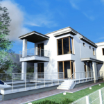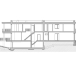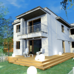 Budynek jednorodzinny dwulokalowy zaprojektowano na „trudnej” wąskiej działce o wymiarach 13,5 na 190 metrów, w miejscowości Blizne Łaszczyńskiego obok warszawskiego Bemowa. Oprócz dużej powierzchni użytkowej budynku (około 300 m2) i małej szerokości terenu, dodatkowym utrudnieniem była bliska odległość sąsiednich budynków od granicy północnej i południowej. Od strony północnej budynek gospodarczy sąsiada stoi częściowo w tzw. ostrej granicy a od strony południowej dom jednorodzinny drugiego sąsiada jest odsunięty o ca 100 cm. Projektowany budynek z dwóch stron odsunięto minimalnie o 150 cm od granic działki, mimo że miejscowy plan dopuszczał zabudowę w ostrych granicach działki. Zaprojektowano biały, częściowo podpiwniczony (garaż i kotłownia) budynek składający się z dwóch brył o płaskich dachach. Dom podzielony jest funkcjonalnie na dwie części z niezależnymi wejściami dla dwóch rodzin. Charakterystycznymi elementami domu są liczne daszki chroniące wnętrze budynku przed upalnym słońcem w lecie i nadające całości większą dynamiczność.